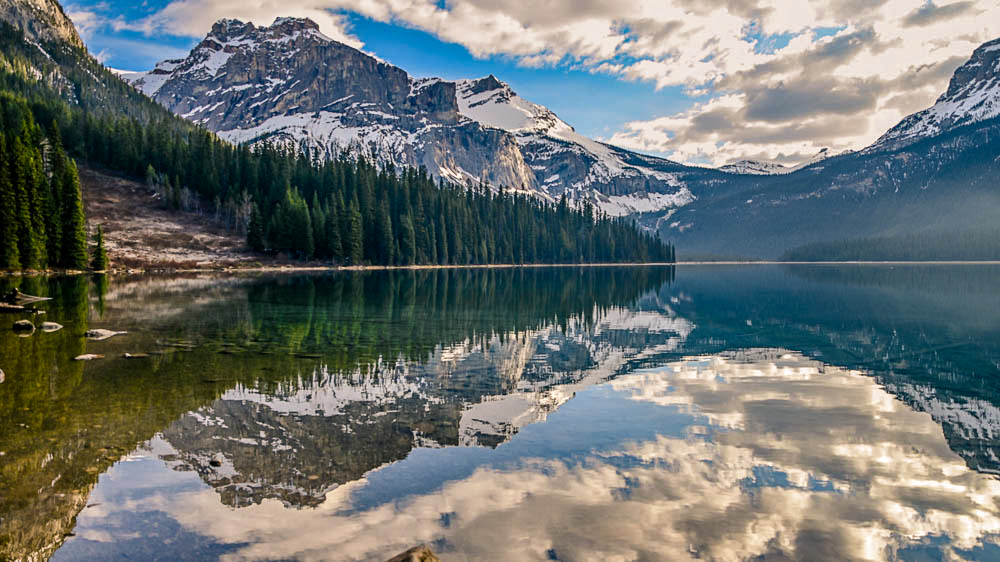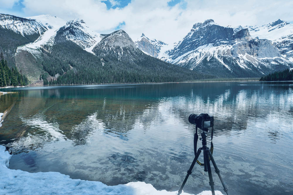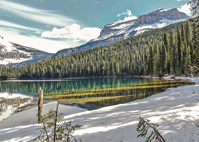 On peut accéder au lac par quelques endroits seulement mais la vue est extraordinaire en mai quand les montagnes sont encore enneigées et que le lac est très calme .