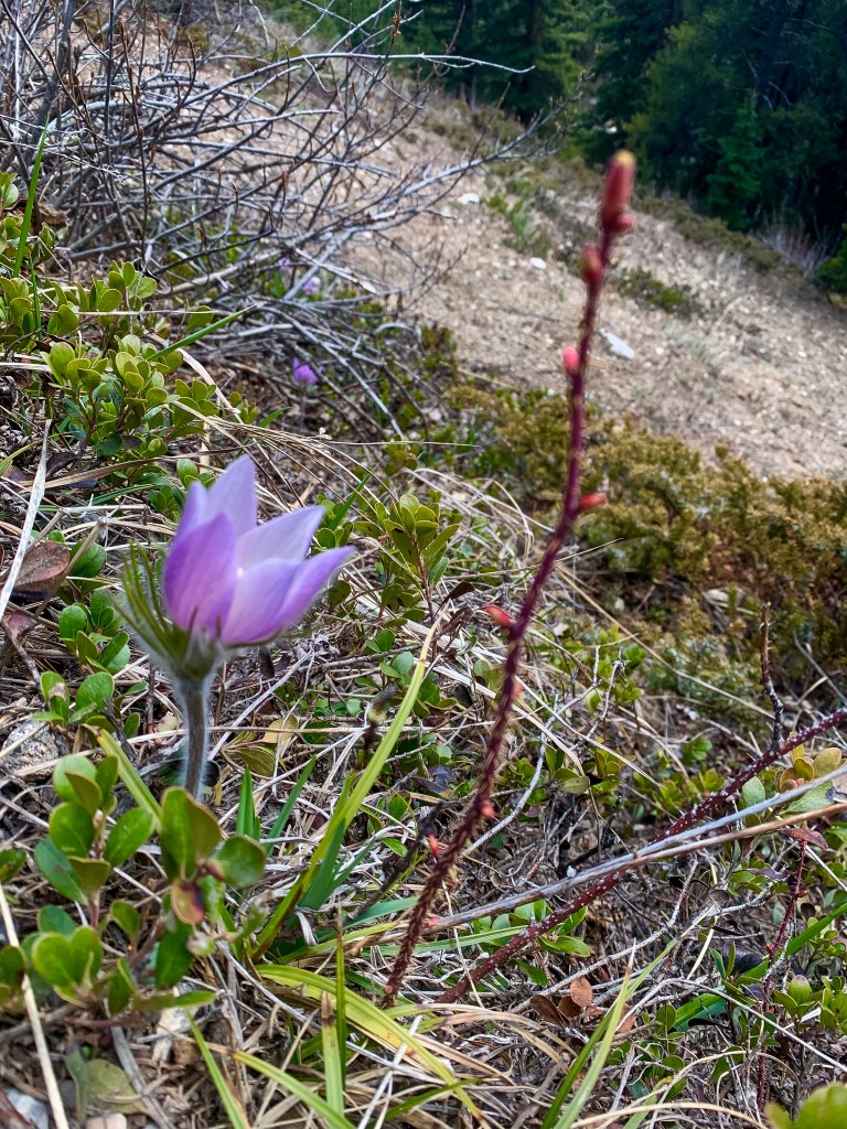 On peut y voir quelques fleurs très tôt en saison dans le bas du sentier .