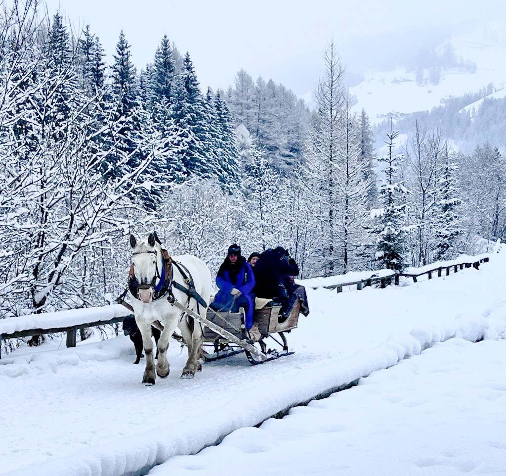 Donc c’est toujours une surprise quand on voit pour la première fois des sentiers de ski de fond en Europe . Les sentiers communiquent souvent entre les différents villages et montagnes . On ne s’arrête pas dans le café du chalet de ski de fond mais dans un café ou restaurant au bord d’un sentier dans un village .